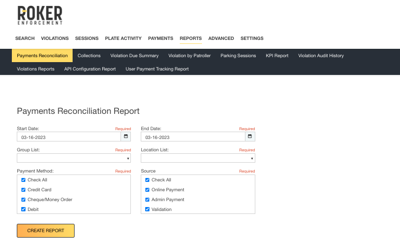 Roker can process violation payments in a number of ways: Admin users can process payments through violation payments Admin Payments Payments are processed on through Violations -> Violation Payment. There are a number of ways to navigate to this ...