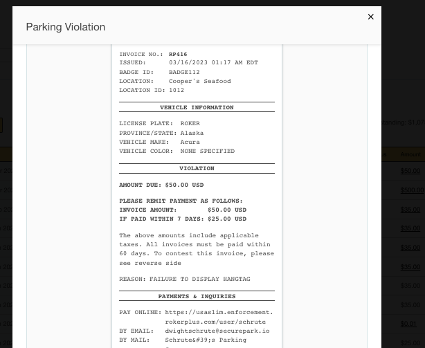Step 4: To review the ticket, select "view violation" and the e-ticket will appear on the screen with all fine information: